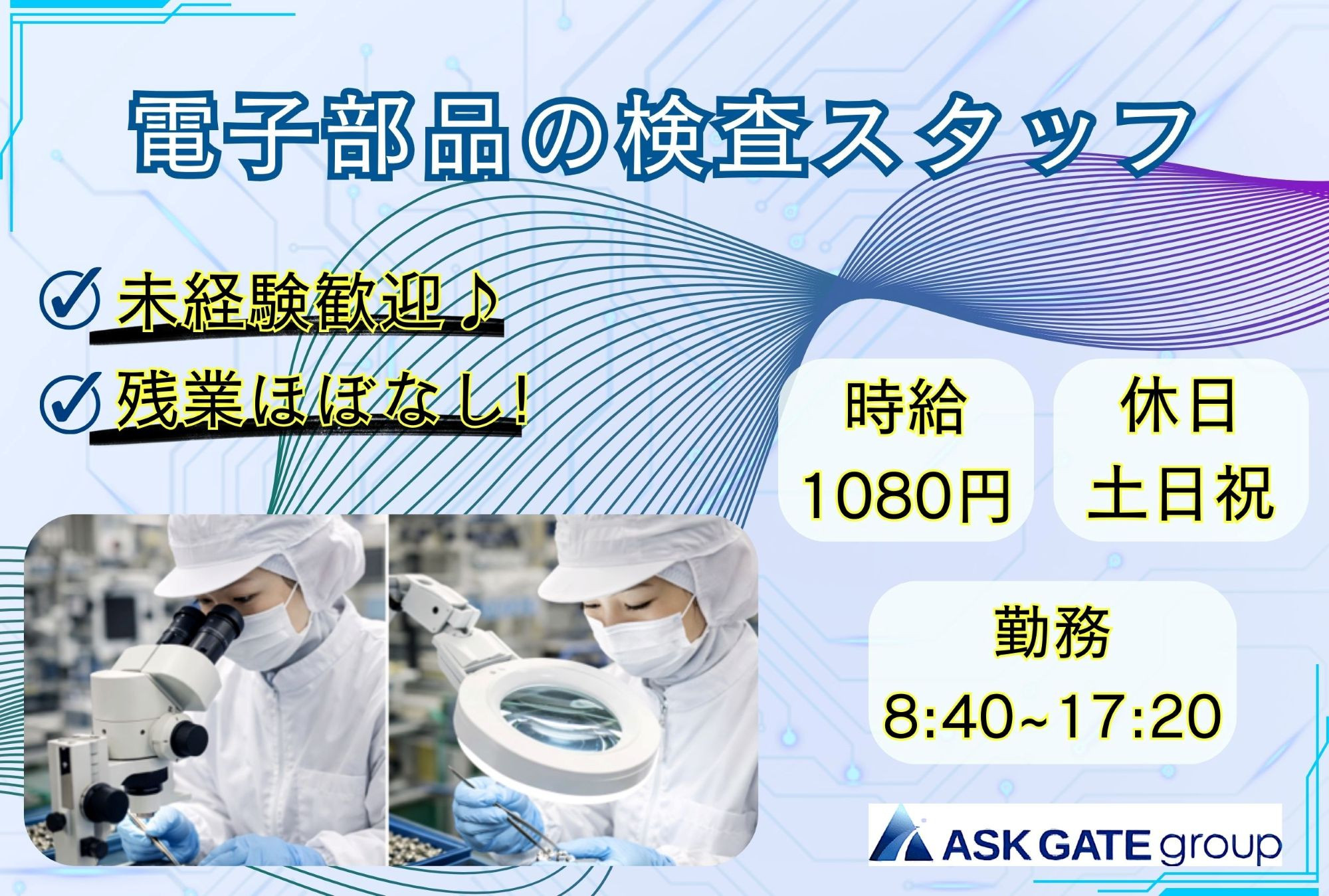 <帯広店>土日祝休み♪【電子部品の検査スタッフ】大募集!!